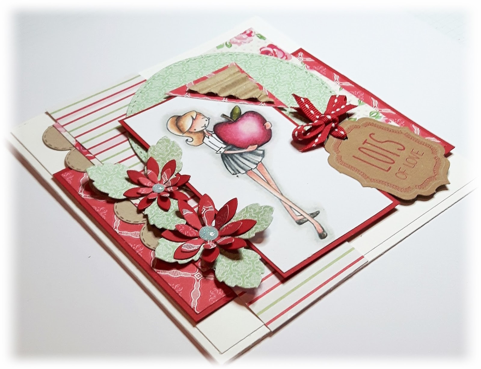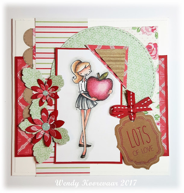 Het is een plaatje, dit mooi ingekleurde meisje met haar appel. Een hele mooie frisse kaart heb je gemaakt Wendy. De opbouw in laagjes en details is top gedaan, complimentjes :)